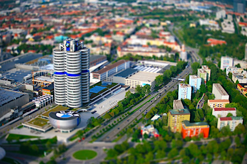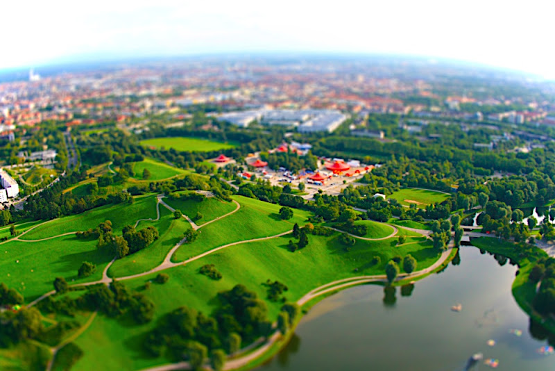 Meanwhile it´s autumn in Munich and I've already been struggling with snow storms on my way to work. To counteract the dark atmosphere here are some photos from sunnier days. A view from the Olympia tower that proves that Munich can also look like a toy town.